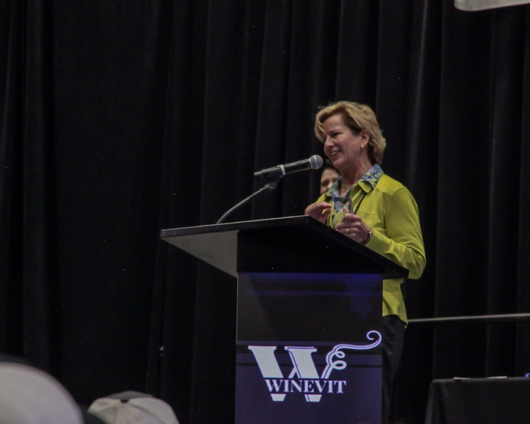 In addition to the annual awards, the Washington Winegrowers Association presented Vicky Scharlau with a Special Legacy of LeadershipAward for her decades of service to the Washington wine industry. Scharlau stepped back from her role of Executive Director for the Washington Winegrowers Association at the end of 2023, but she remains involved with both organizations in an of-counsel role. Her family surprised her at the Leadership & Legacy luncheon while Scharlau was on-stage and she received a standing ovation from all attendees.